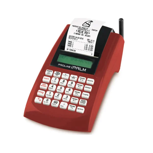 Ταμειακή Μηχανή Proline iPALM Red με μπαταρία (Δώρο συρτάρι + ρολά + προγραμματισμός + παράδοση) ΜΕ ΔΟΣΕΙΣ